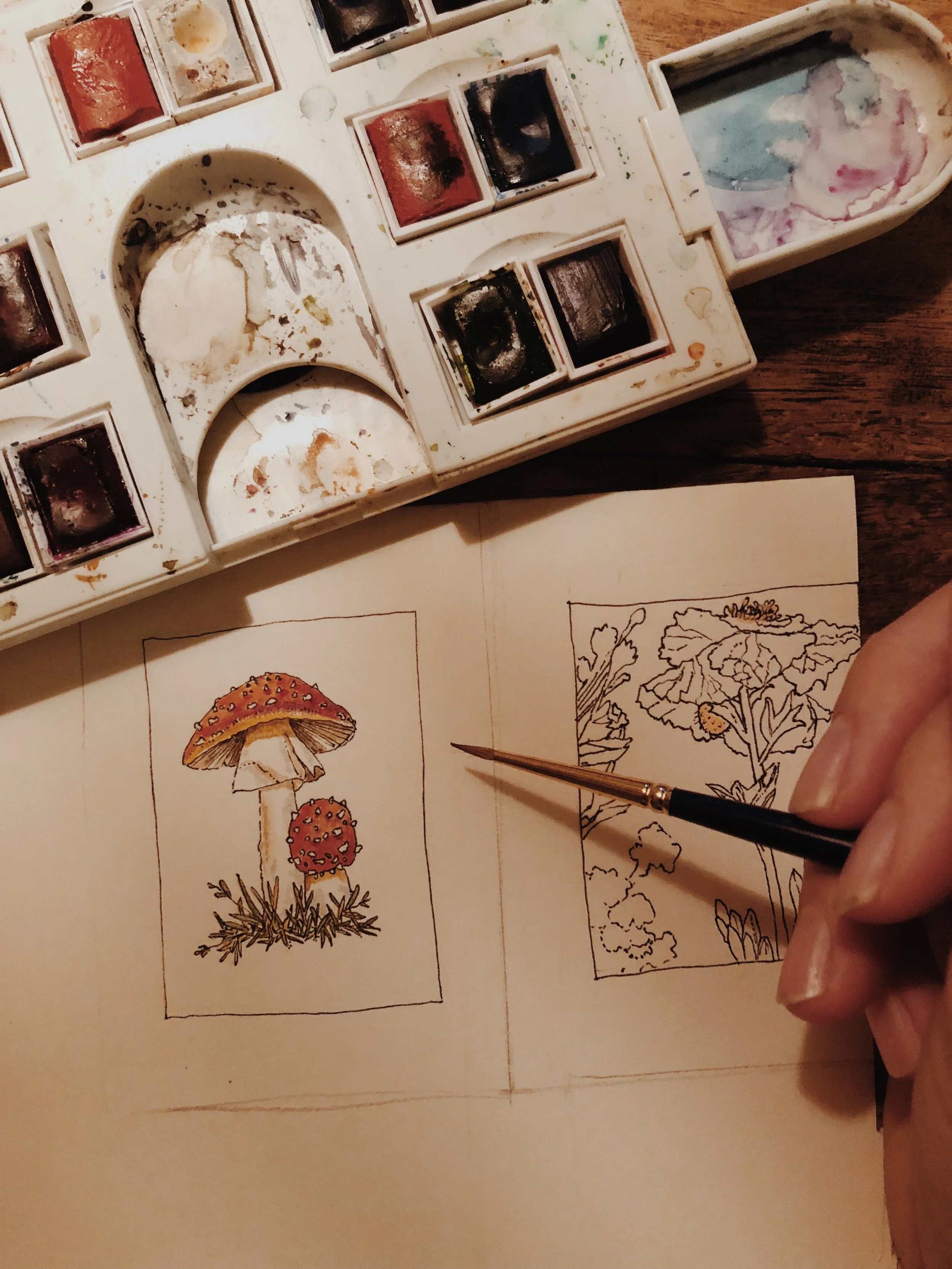 ink and watercolor